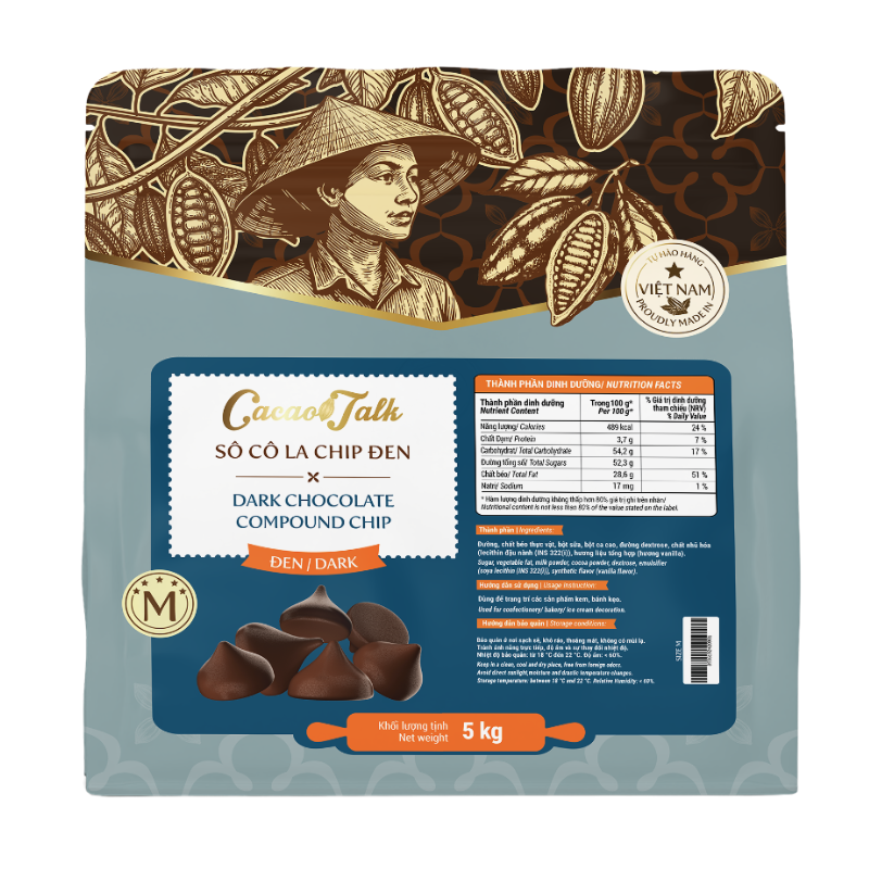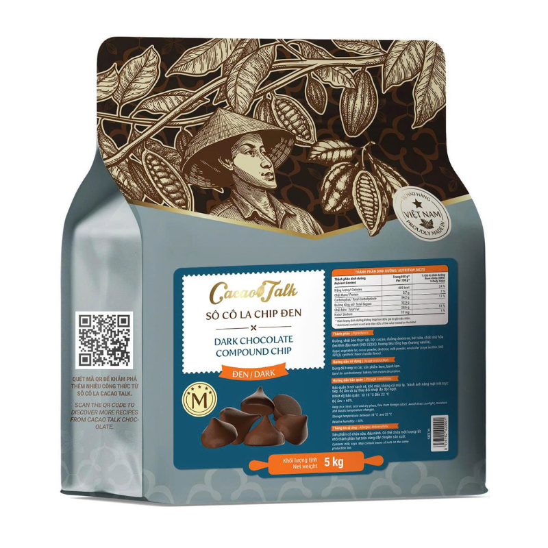 Dark Chocolate Chips Cacao Talk is a product widely used in baking recipes and cake decorations. With a conical shape, a sweet flavor, and a quick melt, along with good heat resistance, it is often used as an ingredient for cookies or for decorating various sweet cakes, as well as making toppings for certain beverages, making them delicious and visually appealing.