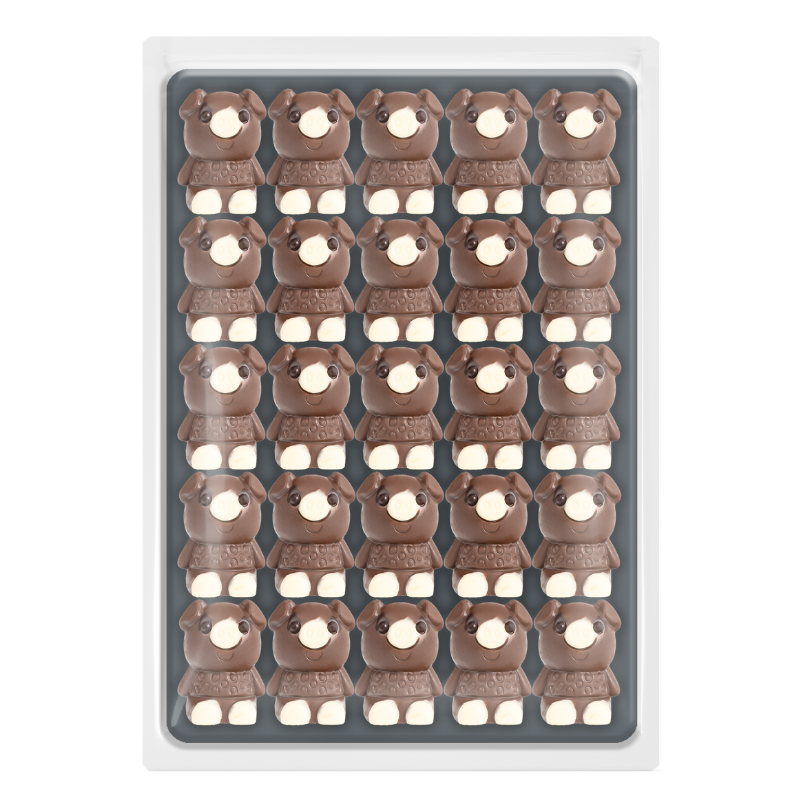 Sô Cô La Compound Hình Heo Sữa Fan-M03 là dòng sô cô la decor tiện lợi, được thiết kế với hình dáng chú heo vô cùng dễ thương, giúp bạn dễ dàng trang trí lên bánh và món tráng miệng một cách nhanh chóng và đẹp mắt.